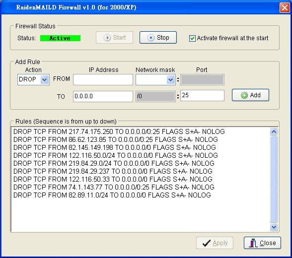 The GUI is only designed for raidenmaild to block IP address. However, this firewall can do more than this. You can refer the original rules document below.