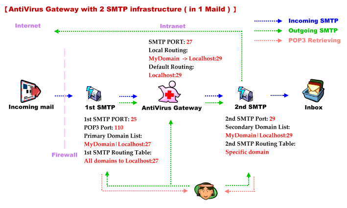 [Incoming mail] -> 1st SMTP -> NAVGW -> 2nd SMTP -> <Store mail to mailbox>