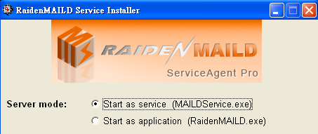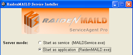 If you choose APPLICATION mode, it will install a service named "RaidenMAILDService" into system services to start and monitor main program "RaidenMAILD.exe". Besides, you don't need to manually start RaidenMAILD.exe because RaidenMAILDService will do it for you automatically.