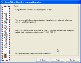 When wizard goes to this step, you already finish main configuration for your mail server, it is ok to click [Finish] to continue.